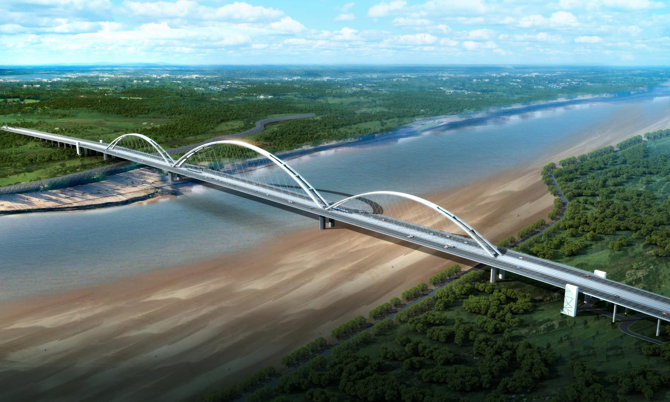 二標段工程范圍起于美里北路交叉口以北,路線樁號K3+671.891,往北起橋跨越黃河后終于國道309交叉口處,路線樁號K6+735,包含黃河大橋主橋、大橋引橋、國道309互通立交,其中跨黃河段橋梁跨徑布置為(95+280+420+280+95)米,采用下承式系桿拱橋,主孔跨徑420米。