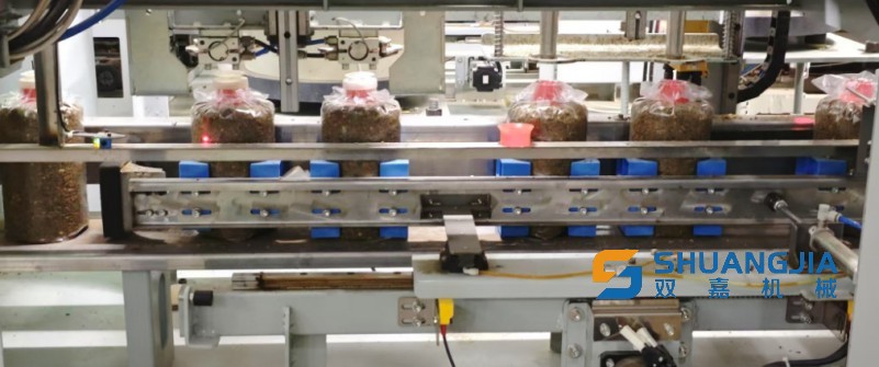 在裝包車(chē)間,機(jī)器里“蹦”出來(lái)一個(gè)個(gè)用塑料袋扎緊的菌包,由傳送帶繼續(xù)向前運(yùn)輸,只有3個(gè)工人站在傳送帶前檢查。這套全自動(dòng)化生產(chǎn)系統(tǒng),一天能產(chǎn)3萬(wàn)個(gè)菌包,而在以前,人工套袋扎口十分麻煩,同樣的產(chǎn)量則需要40余人。