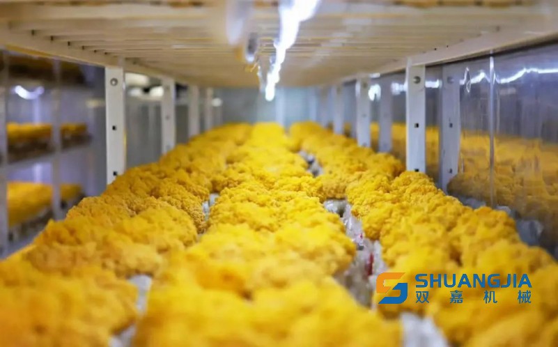 據(jù)了解,種植基地由廢棄學(xué)校改建而來(lái),10個(gè)集裝箱般的“智慧方艙”整齊排列。步入恒溫恒濕的方艙,菌包整齊排列在架子上。原本生長(zhǎng)于云貴高原的金耳,通過(guò)方艙內(nèi)集成的超聲波霧化、自動(dòng)恒溫、視覺(jué)感應(yīng)及人工智能系統(tǒng),實(shí)現(xiàn)了對(duì)溫度、濕度、光照、通風(fēng)及二氧化碳濃度的實(shí)時(shí)精準(zhǔn)調(diào)控,成功“北遷安家”,并實(shí)現(xiàn)“天天出菇”。