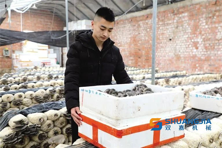 合作社負(fù)責(zé)人王金山介紹,種植基地每畝產(chǎn)量20噸左右,一年可產(chǎn)兩到三茬成品蘑菇,效益十分可觀?!拔覀儗⒂衩装舴鬯椋瑩饺臌熎?、白灰,發(fā)酵后裝入塑料袋,經(jīng)過高溫消毒后進(jìn)行接種就可以形成菌棒?!蓖踅鹕秸f,“等菌棒約生長(zhǎng)一個(gè)半月后完全變成白色就能長(zhǎng)出蘑菇,可連續(xù)生產(chǎn)5至6個(gè)月,直至養(yǎng)分耗盡,每畝可放置菌棒約兩萬個(gè)。菌棒是蘑菇生長(zhǎng)的培養(yǎng)基,能為蘑菇提供充足的營(yíng)養(yǎng)?!?/p>